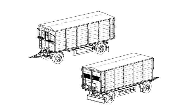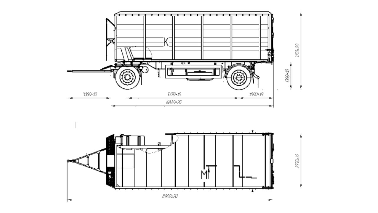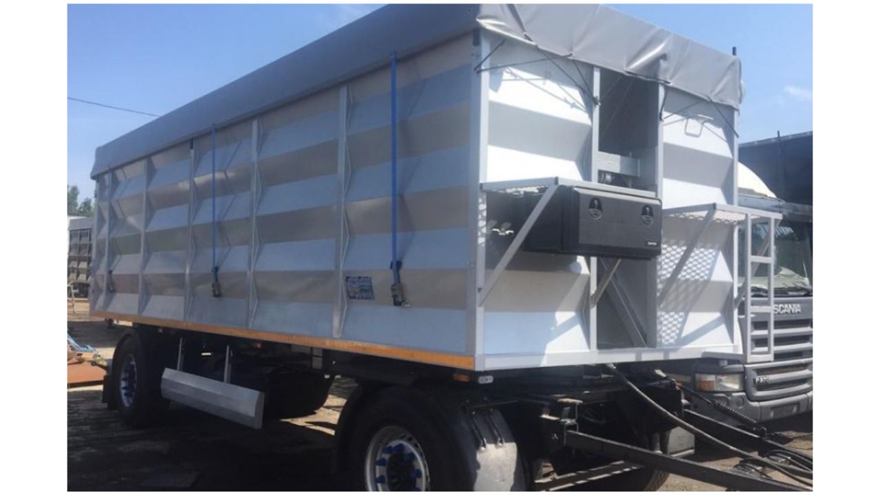 Кузов причепа – виготовлений з металу, площадка зі сходами на передньому борту, задній борт самоскидного типу з розтібними воротами на дві або чотири воротини, люк для дозованого відвантаження вантажу, трапік для обслуговування тенту. Каркас кузова виготовлений з профільної труби, товщина 3 мм. та листів металу товщиною не менше - борта 2 мм, дно 2 мм. Кузов оснащений зсувним набік тентом 650 г/м2. Колір кузова на вибір замовника.